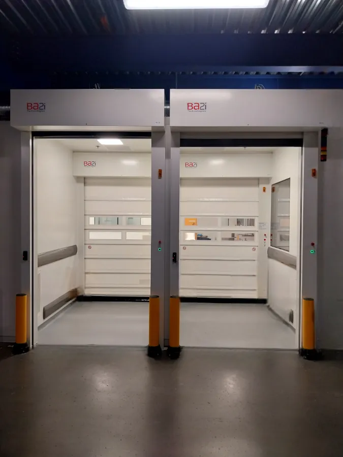 Toutes les portes rapides BA2I Technologies destinées aux sas peuvent être équipées d’un intervérouillage directement via la carte mère ou en interphase avec un automate d’interlockage tiers. Nous pouvons également intégrer des voyants d’état directement sur les montants de porte pour faciliter la lecture des indications par les utilisateurs.